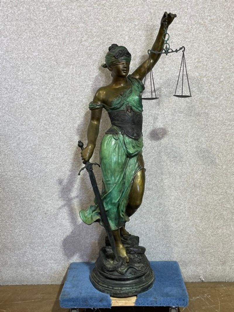 Explore a wide-ranging online estate auction featuring a 1997 Harley Road King and a striking 6-foot bronze statue of Lady Justice. This sale includes an assortment of bicycles, a vintage barber chair, and a large collection of artwork such as oil paintings, watercolors, serigraphs, prints, posters, mixed media pieces, lacquer panels, and embossed copper works. Collectibles span multiple categories, including cookie jars, Royal Doulton, Texaco, Star Wars, comic books, Magic: The Gathering and Pokémon cards, Marvel items, die-cast vehicles, sports memorabilia, Chevrolet wheel covers, marbles, Beanie Babies, Avon, Coca-Cola items, dolls, coin banks, and paperweights. Additional offerings include decanters, art glass, Limoges, mirrors, candle holders, figurines, flower frogs, bookends, table radios, lamps, tea sets, vases, ceramics, clocks, sculptures, sewing desks, cut glass, flatware, glassware, dinnerware, crystal, a typewriter, Foo Dogs, and sterling pieces. The auction also features vintage compacts, apparel, accessories, sports equipment, a surfboard, electronics, china, vintage cameras, holiday décor, nesting tables, and a selection of antique and vintage furniture. With a wide variety of items across every category, this estate auction offers something for collectors, decorators, and enthusiasts alike.