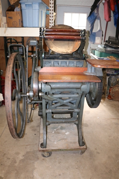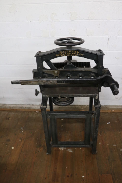Auction includes - Backing Boards , Agate Burnisher , Brass Gold Tooling Wheels , Brass Alphabet Set , Brass Gold Tooling Set , Hand Held Chases , Brass designed tools for gold tooling books , Brass Gouges , Brass Straight Line Tools , Wooden Bag Wagon , Copy Pad Bath , Paper Cutter , Pressure Cooker , Parts/Bolts Box , 4 wheeled Flat Dollies , Lithostones , Cast Michelin Memorabilia , Wooden Type Cabinet , hand Mill/ Grinder , Tobbaco/ Meat / Cheese Slicer , machine manuals , Wood Plainer , Books , 3 hole Punch ,Sewing Frame , Cast Iron Seat , Double Type Cabinet , Proof Press , Letterpress , Lead Scrap , Type , Type cases , Ornaments & Cuts , Glue Pot , Quarter rule Cases , Kensol Parts , Brass mini chase , Lying Press , Guillotine , Type Cabinet , Flat Files , Leather Braided Whip , Etched Glass , Machine Manuals , Metal Polish , Litho Perf , an more
