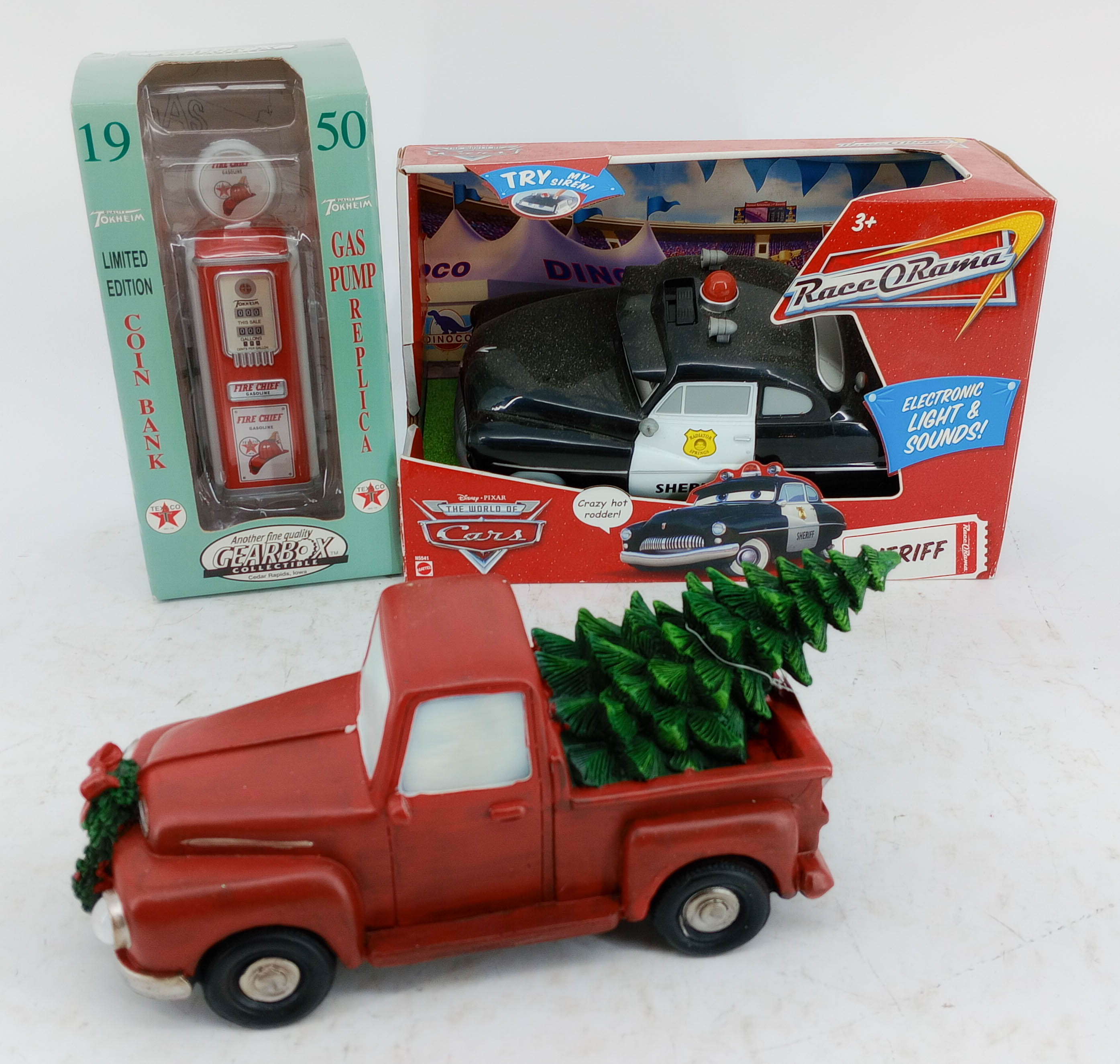 PIXAR CAR'S SHERIFF, GEARBOX DIE-CAST GAS PUMP REPLICA & CMAS DEC. INV 250692995
