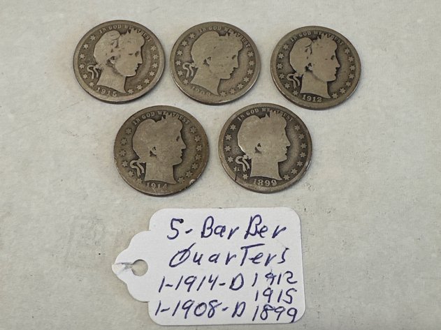 Coin Medallions, Wheat Pennies, Nickels, Susan B Anthony Dollar Coins, Silver-clad Quarters, Eisenhower Dollar Coins, Misc Bill Lot, 24K Gold Plated Bicentennial edition Kennedy Half Dollar, Kwik-Cafe Business Cards with Dimes, Confederate One Hundred Dollar Bill Poster, Grand Mason Belt Buckle and Keychain Pill Storage, Jefferson Nickels, Lincoln Memorial Pennies, Bicentennial Silver Proof Set, American Bison Nickel Collection, Bicentennial Silver Uncirculated Set, World War 2 Silver Nickels, 1963 Proof Coins, 1990 Uncirculated Bank Set, 1999 24Kt Gold Plated Presidential Collection, 1987 Prestige Coin Set, Silver One Dollar Bill Copy of Series 1923, 2001 2 Dollar Gold Certificate, 1934 20 Dollar Bill, 1923 Dollar Bill, 1963 B Dollar Bills, 1963 Dollar Bills, 1953 Red Seal 2 Dollar Bill, 1957 Blue Seal Dollar Bills, 1976 2 Dollar Bills, 1935 Blue Seal Dollar Bills, 1928 C Red Seal,1934 Green Seal 5 dollar Bills, 1934, 1950, Twenty Dollar Bills, 1976 2 Dollar Bill Off-Center Cut, 1953 Red Seal 2 Dollar Bill Off-Center Cut, 1976 Stamped 2 Dollar Bill, Silver John Deere Medallion, American Eagle Silver Dollar, American Eagle 5 Dollar Gold Coin, American Eagle 1 Oz Proof Silver Bullion Coin, 1943 Zinc Coated Steel Pennies, Dale Earnhardt Silver Medallion, 1909 V.D.B. Penny, 1 Troy oz. Silver Art Bar, England Half Penny 1940-1960, Australia Pennies and England Shillings, Assort of Wheat Pennies, dates do not match book, Independence Mall Bicentennial Mint, 1 Cent Blank Planchet, German Pfennig, Kennedy Half Dollars, Franklin Half Dollars silver, Steel Pennies, Dimes 1940s silver, 1960s Quarters silver, Franklin Halfs 1960s silver, 1960s Pennies, States and Parks Quarters, Indian Head Nickels 1930s, Franklin Half Dollars silver, Indian Cents 1800s, Denier Tovrnois 1607, California Gold Dollar 1858, Westward Journey Nickel Series, War Time Cent Set, Kennedy Halfs 40% Silver, Mercury Dimes, Mystery Coins, One Dollar Coins 2000, Broken Die Nickel Double Struck, Capped Bust Dime 1835, Half Dollar 1915-D, Liberty Head Nickels 1900, 1897, 1902, One Cent 1863, New Zealand 20 1969, Standing Liberty Quarters, Walking Liberty Half Dollars, Indian Cents 1863, 1864, Kennedy Halfs Silver Clad Mixed Dates, Silver Dimes, Unsurculated 1962 Penny Dime and Nickel, Barber Quarters, 5 Wheat pennies 4 1909 VBD, 1 1909, 50 Wheat Pennies, 1909 VBD- 1960, Missing 1959, 43 Wheat Pennies 1919 Some S-D Mint Mark, Franklin Half Dollars 1950s silver, Standing Liberty Quarters, 1910 Barber Dime, 1919-D Indian Head Nickel, 1876 Shield Nickel with rays, Silver Clad Nickels, 2 1945-S, 2 1943-S, Two Cents pcs.1868, 1865, Half Cent 1800, Rare Pennies, California Gold Dollar 1856, Kennedy Mint Proof Set, Deluxe Silver Proof Set 1993, Blue Seal One Dollar Bill 1957, 2 Dollar Bill Red Seal 1963 off center cut and 50 Dollar Bill 1934, One Dollar Bills 1963 B, 6 Blue Seal One Dollar Bills 1935, 2 100 Dollar Bills AU, 5 Red Seal 5 Dollar Bills 1963, 5 Red Seal 2 Dollar Bills 1953, 3 Blue Seal 1 Dollar Bills 1957, 100 Dollar Bill 1929, Silver Certificate 1 Dollar Bill 1935A, 10 Dollar Bill 1934A, Blue Seal 1 Dollar Bills 1935, 1976 2 Dollar Bills, Silver Certificate 1 Dollar 1899 Black Eagle, Ten Pesos Bill, Ten Yen Bill, 1 And 5 Yen Japanese Bills, 2 1 Yen and 2 10 Yen Japanese Bills, 10 Deutsche Mark, Canadian 20, Scenes of Canada Series, Two Cents 1867, 26 .90 Silver Dimes, 36 Dimes 1968 silver clad, 1909 VDB Penny, 1916 -D Mercury Dime, 80 Kennedy Half Dollars Mixed Dates, 1905 -S Liberty Head 20 Dollar Double Eagle, 1879-S Morgan Dollar, 1882 Morgan Dollar, 1884-O Morgan Dollar, 1886 - O Morgan Dollar, 1887 - O Morgan Dollar, 1889 Morgan Dollar, 1888 Morgan Dollar AU, 1891 - O Morgan Dollar, 1897 Morgan Dollar, 1902 Morgan Dollar, 1921- S Morgan Dollar, 1921 Peace Dollar, 1922 - S Peace Dollar, 1922 Peace Dollar, 1923 Peace Dollar, 1925 Peace Dollar, Silver Dollar 2011, 1965 Winston Churchill Crown, 1953 Half Crown, 1974 Liberty Dollar, Coin Books, 46 Kennedy Half Dollars 1776-1976, 66 Susan B Anthony Dollars Mixed Dates, 1982 Pennies, 3 Gallery of Great Americans Commemorative Coins, Mixed Lot, 1818 One Cent, 1970 Royal Mint Proof Set, Elgin Pocket Watch, Franklin Mint Holiday Cards With Collectables, 1912 British Trade Silver Dollar, Israeli Coin Lot, Mixed Foreign Coins/tokens, Coins/Tokens, British Pennies, Foreign Coins, Canada and Great Britain Coins, Canadian Mixed Coins, German Banknotes, Peter Rabbit and Coca Cola Tins, 1976 Star Trek Event Memorabilia, Vintage Cigar Boxes, Desert Storm Cards Pro Set, Desert Storm/Flags Cards Set, Desert Shield Card Set, Desert Storm Cards, Arrowheads, Baseball Cards and Nascar Bill, German Napkins, Vintage Postcards, May 1942 Workers of America Pin Buttons, German Silver Chain Mail Purse And much more