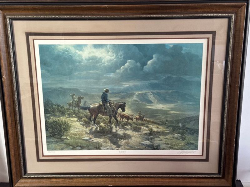 This estate auction offers a well-rounded mix of furnishings, artwork, décor, and collectibles from a private collection. Furniture highlights include an antique dresser, vintage half-round console table, Ethan Allen oval table, English tray table with Spode, a mid-century desk, mid-century rattan and wood side table, Bombay side table, antique piano stool, antique rocking chair, Flexsteel rocking chair, antique side table, and a vintage rush chair. Artwork in the sale features pieces by Olaf Weighorst, Jon Holland, Lee Dubin, Joe Beeler, Aldo Luongo, and others, along with decorative items such as an antique regulator clock, area rug, stained glass, lighthouse wall art, wall sconces, and a 1930s radio. Collectibles and decorative accents include a spirit stick, rainstick, totem axe, antique bellows, vintage tools, baskets, paperweights, nesting dolls, ceramics, Mexican figural pottery art, a Talavera ginger jar, Lladro figures, Precious Moments figurines, Peanuts memorabilia, toys, and Easter décor. Tabletop and household items include Rosenthal Pastel Poppy china, Rosenthal Classic Rose china, Lenox china, vintage tea cups, vintage serveware, vintage kitchen items, fireplace tools, antique books, fashion jewelry, accessories, vintage Italian purses, a vintage fur stole, HO scale trains, cowboy boots, and more.