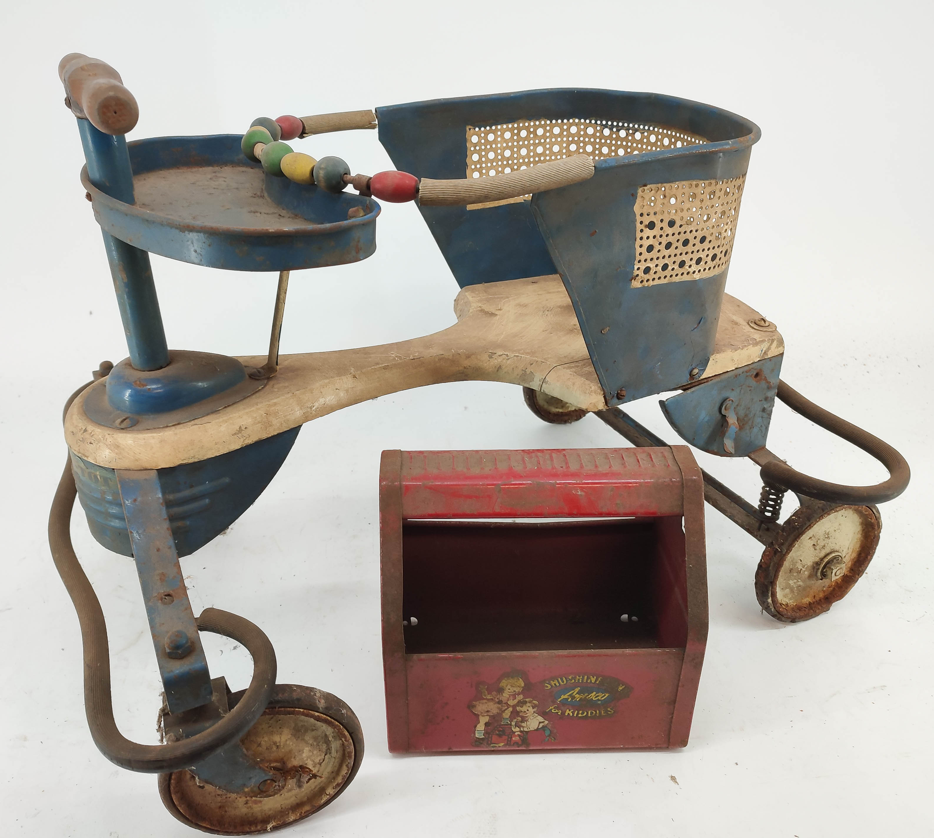TRAY LOT OF OIL CAN, HOUSEHOLD ITEMS, BURRY'S HOMESPUN BISCUIT BOX INV 260010543