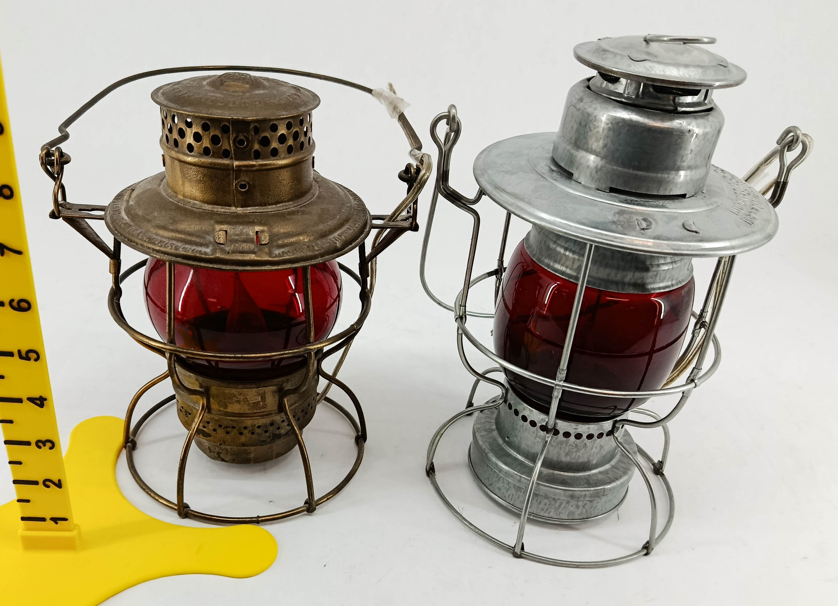 2 ELECTRIFIED KERO LANTERNS, 1 READING W/ CRACKED RED GLOBE AND 1 RDG. CO W/ EMBOSSED INV 260870079